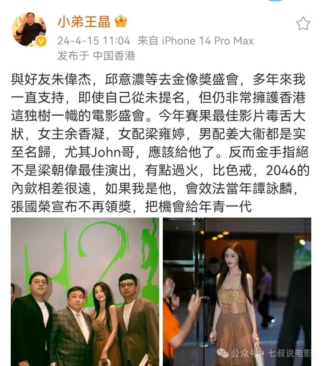 不懂行的某些明星粉丝嚷嚷两句还情有可原,真的很难想到圈内的大咖王晶导演也赶过来凑热闹,发文建议梁朝伟选择退出奖项评选。