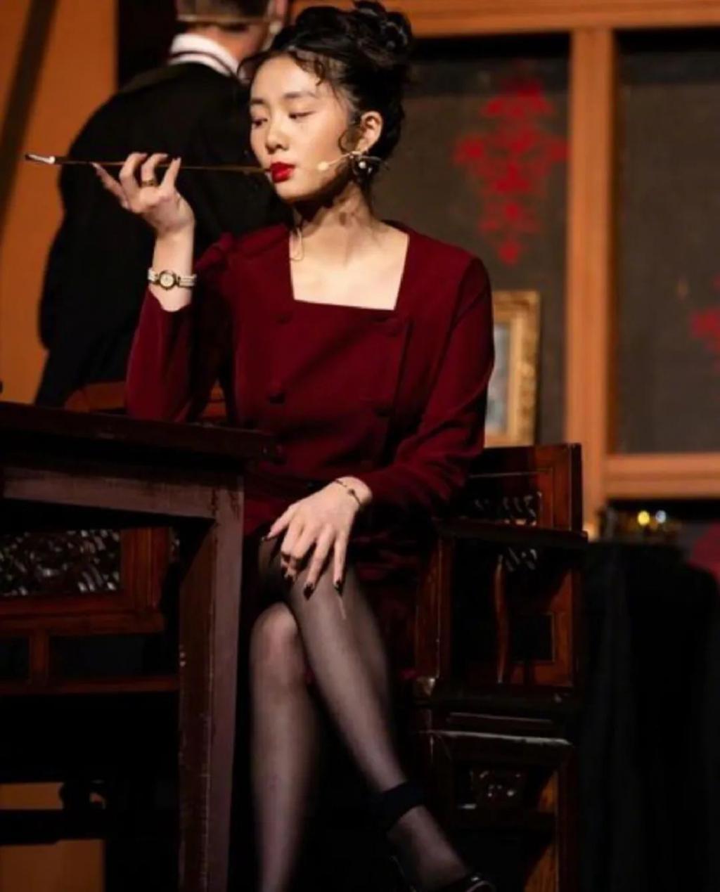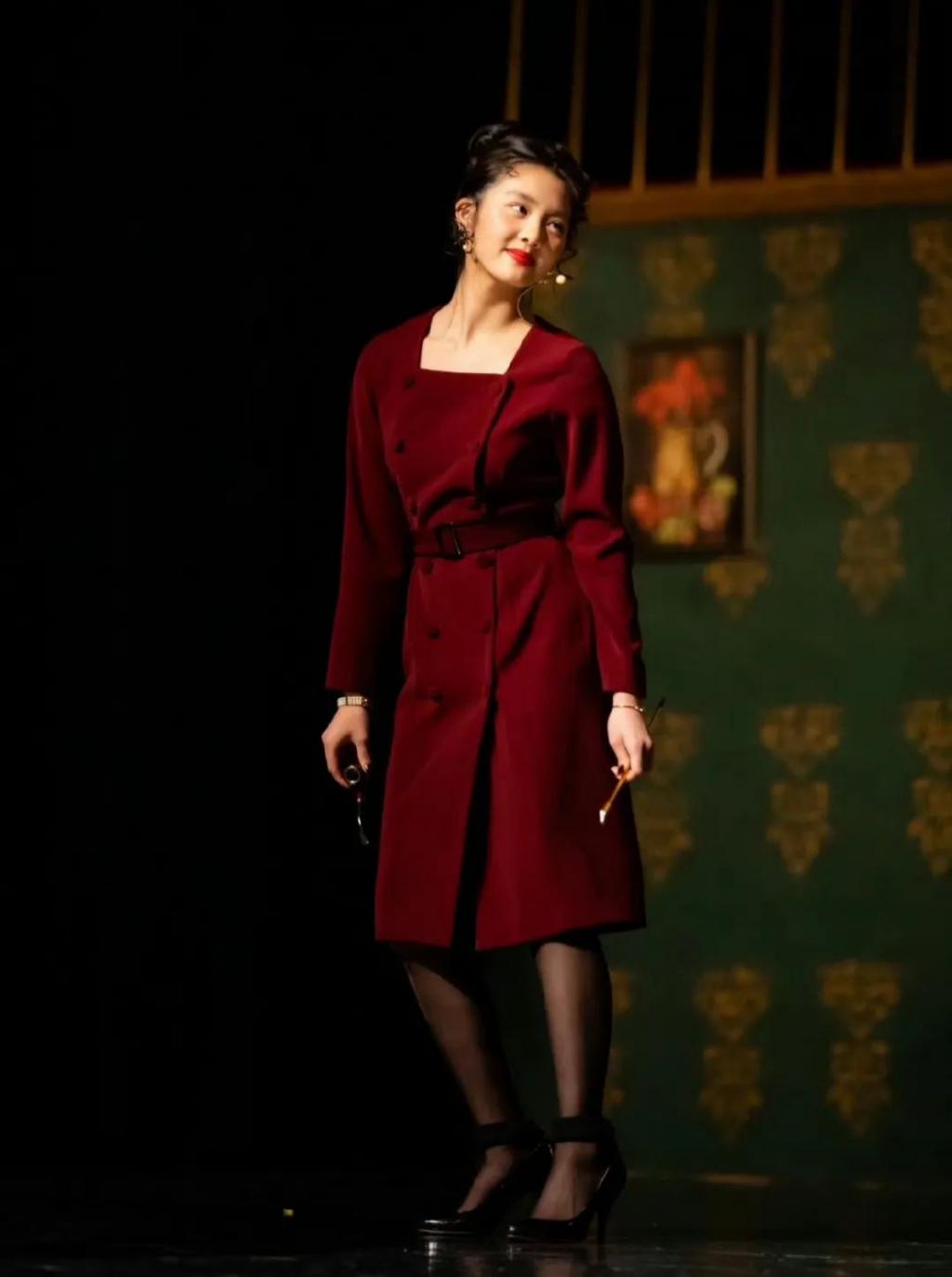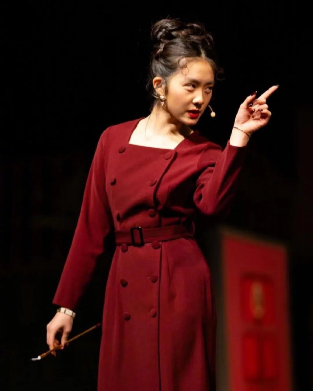 4 月 16 日,黄多多的一组舞台剧造型照引发了网友的讨论,画面中的她穿着一身红色的套装,看上去很干练,只是静态的剧照,可是从表情和神态,都不难看出表演非常专业。