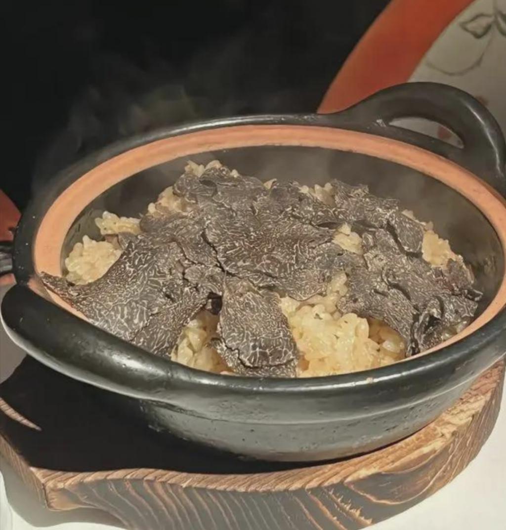 王诗龄在国外吃火锅,上面铺满了黑松露。
