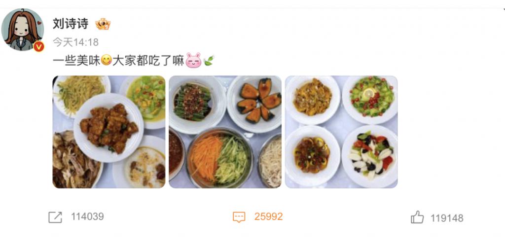 刘诗诗晒出了自己做的三大桌子饭菜。