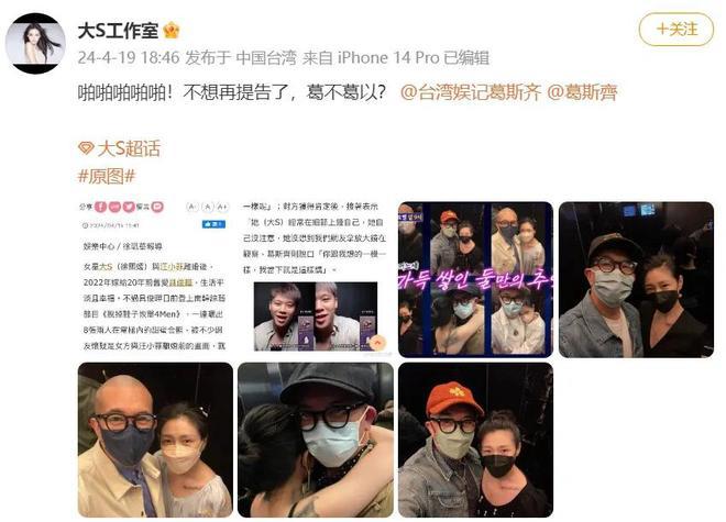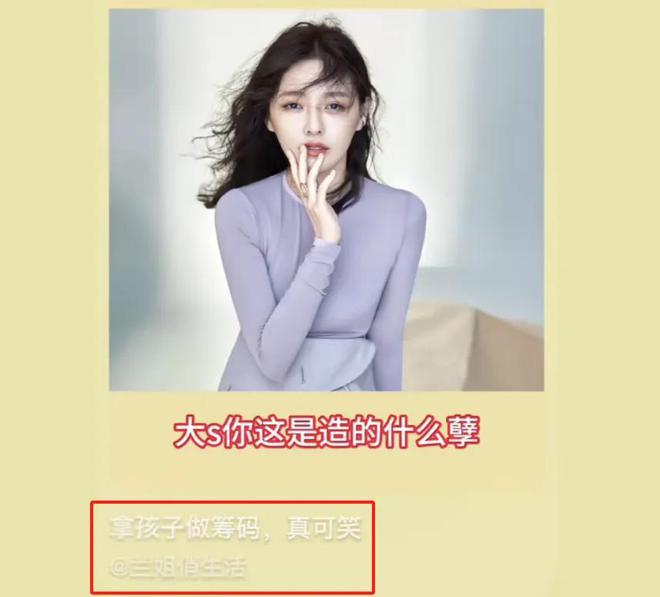 张兰账号转发了网友做的视频,开头第一句就是说大 S 造孽,张兰配文称 " 拿孩子做筹码,真可笑 "。之前葛斯齐也说过,要抚养费的时候就用孩子做筹码,但孩子需要照顾的时候也不好好照顾。