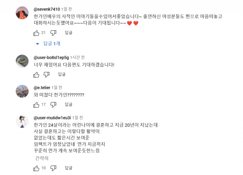 很高兴能听到韩佳人演员的私人故事 ~ 出演的女生们好像也是真心敞开心扉在对话 ~ 很期待下集 ~
