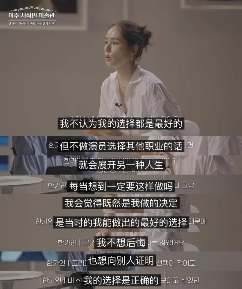 当韩佳人被问到人生中有没有做过后悔的选择时,她表示不认为自己的选择都是最好的。但如果没有成为演员,就会展开另一种人生。每当觉得累的时候,心里都会认为这是当时自己能做的最好的选择,所以不想后悔,也想向别人证明自己的选择没有错。