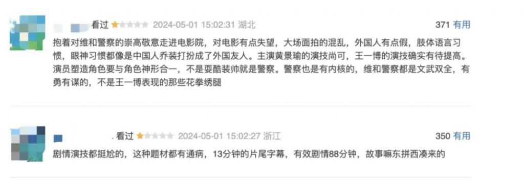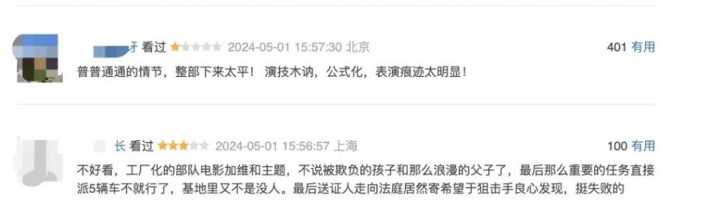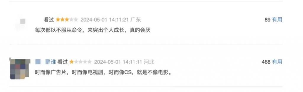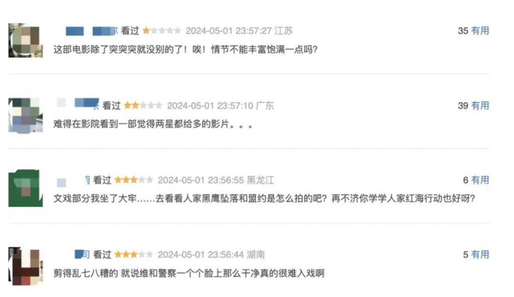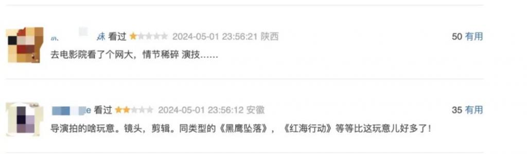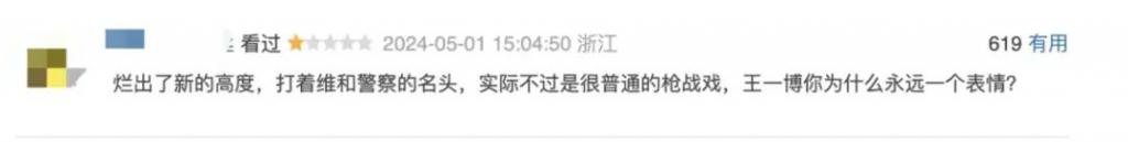 但也有观众直接吐槽该片烂出了新高度,像是去电影院看了部网络大电影,情节稀碎有很多 bug,为了燃强行推进,剪辑也很混乱。
