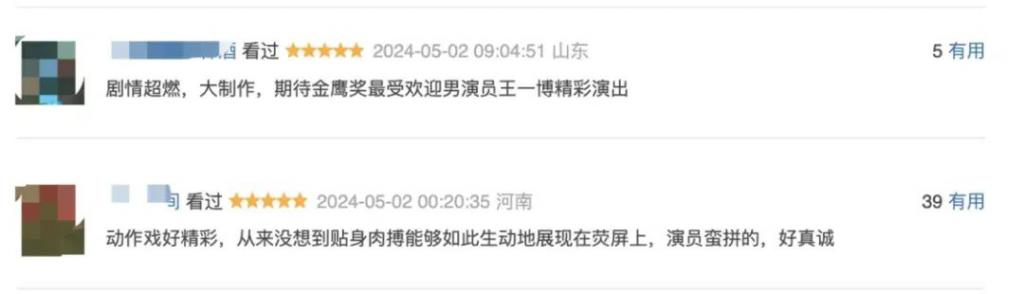 有网友大赞该片传达的精神内核以及动作戏,也夸赞了王一博的表演。