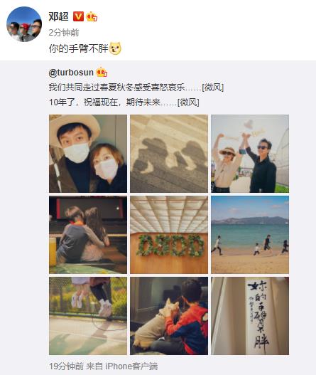 孙俪晒温馨照庆结婚十周年 邓超转发花式夸妻