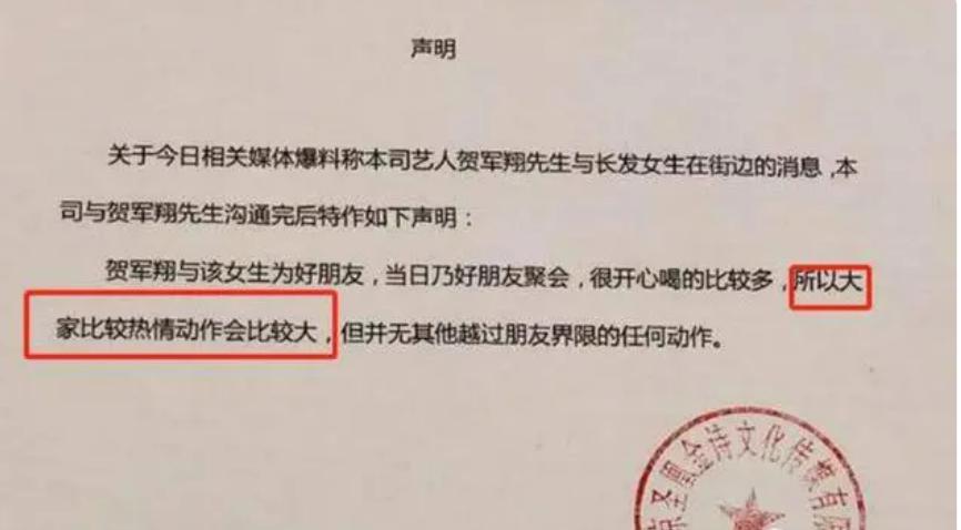 但贺军翔这边发声明澄清来着,说他那天晚上酒精上头,喝的太开心了,所以大家的动作幅度才会这么大。