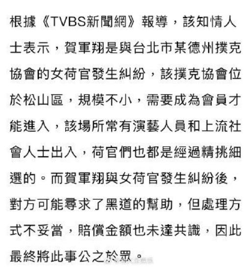 还有说法是贺军翔和台北某德州扑克协会的女荷官发生了纠纷。