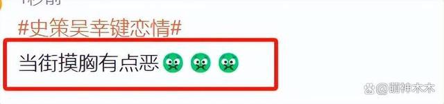 当天史策到机场去接吴幸键,吴幸键看到史策之后也很开心,上来就把史策搂进了怀里,但他的下一个动作直接打碎网友的滤镜。当天可能气温不高,史策穿了外套还穿了马甲内搭,结果吴幸键把史策搂过去之后,手扒拉开衣服当众摸了她的胸,画面尺度惊人,让网友大喊猥琐。