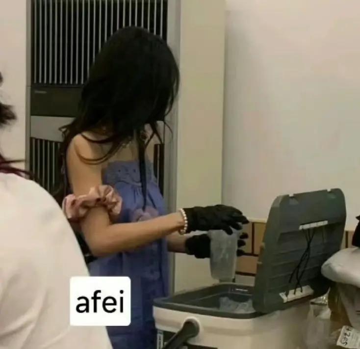 Baby 穿着 3400 多元的蓝紫色吊带裙,化着精致妆容,披肩发垂在肩头,脖子上的项链亮晶晶,一看就价值不菲,手上还戴着珍珠手套,满满的贵妇风,不像是来干活的,反而更像是参加名媛茶话会。