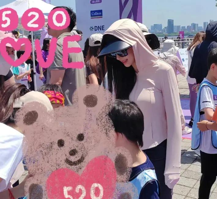 董卿此次也惊喜现身,虽然没有 baby 那么光芒四射,但优雅端庄的形象依然十分吸引人。和 baby 的高调不同,董卿穿着简单的白 T 恤搭配米白色马甲,头上戴着遮阳帽,一直忙前忙后的在现场做义工,被要求合照的时候也很亲切,积极配合。