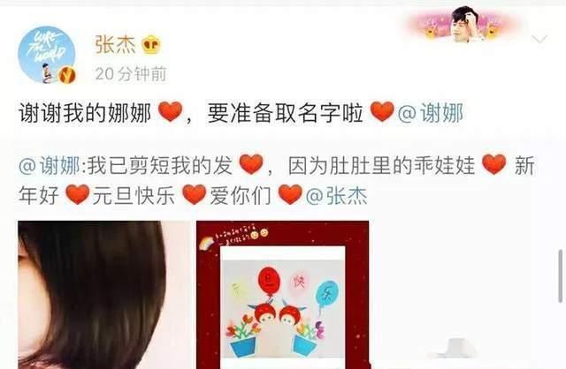 谢娜怀孕也算是一件喜事吧,在元旦来临的时候发布消息也算是谢娜已经想好的结局吧,很多人看见了谢娜在自己的社交软件发布喜讯的消息,文字的大概意思就是谢娜自己怀孕了,为了以后的生活方便和其他原因,谢娜决定剪掉了自己的长发,留起了短发,还告诉张杰老公叫他取名字,真是一派和谐的气氛。