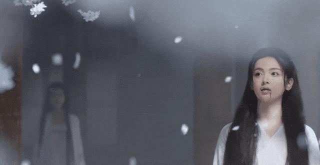 弥留之际,她唇色惨白,散着头发走在散落的梨花雨中,看起来落寞又可怜,眼中却带着无尽的希望。