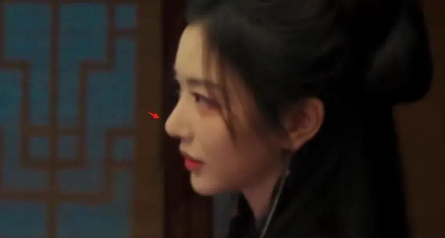 侧脸更奇怪了,鼻子像淘气堡里的滑梯一样,又弯又翘,一看就是人工打磨过的弧度,非常不自然。