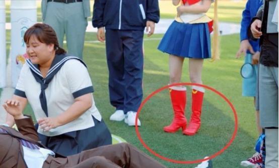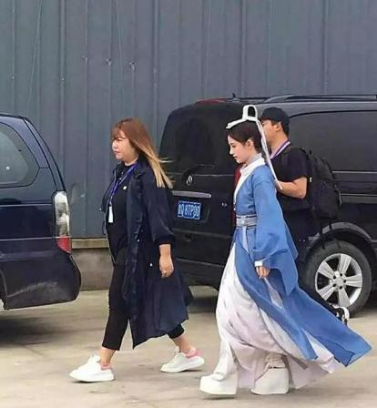 于是,在剧组时,大家就看到了穿着一双巨高的砖头鞋的鞠婧祎。