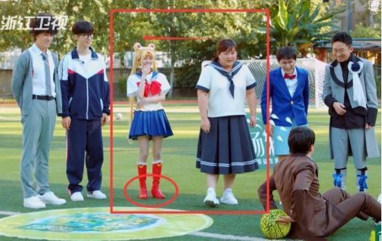 因此,才出现了160的鞠婧祎跟165的贾玲一样高的画面。