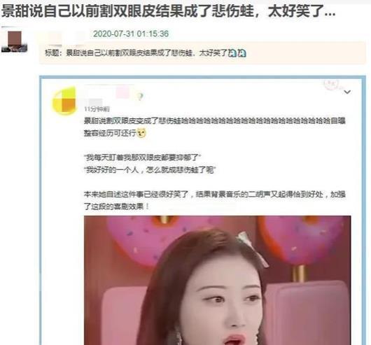 景甜公开承认整容!调侃自己整容后秒变悲伤蛙,网友:都怪眼太大