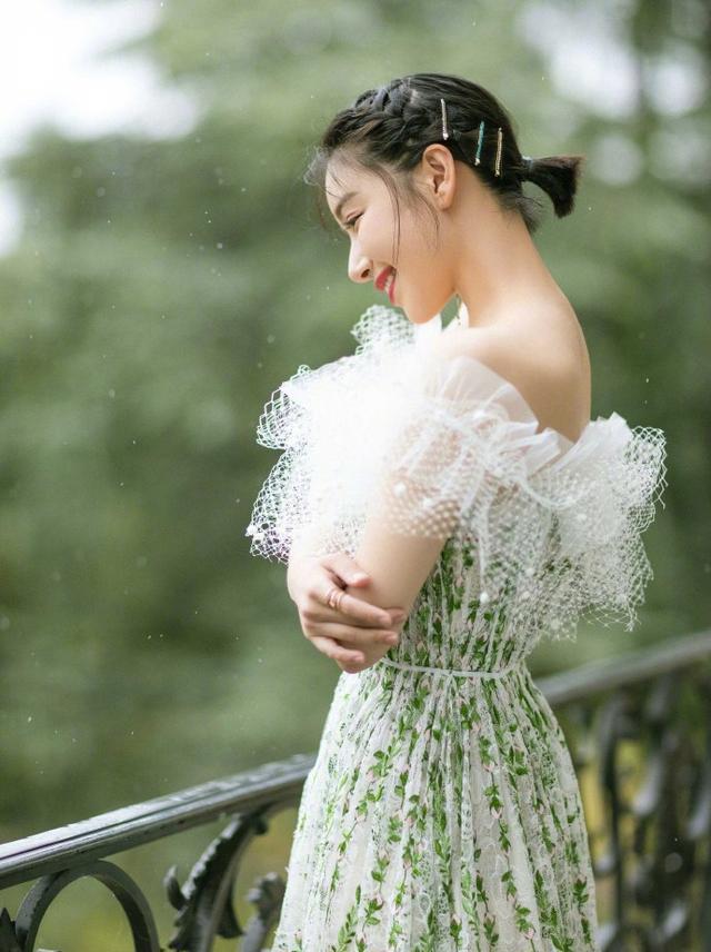 雪白的网纱流苏领撒上嫩绿色的花点搭配修饰,两个颜色的视觉感对比性超强,不过白色很百搭,绿色又清新。阚清子的短款编发漏出甜甜的笑容,尽显单纯少女。