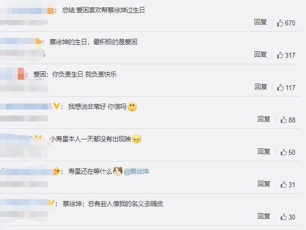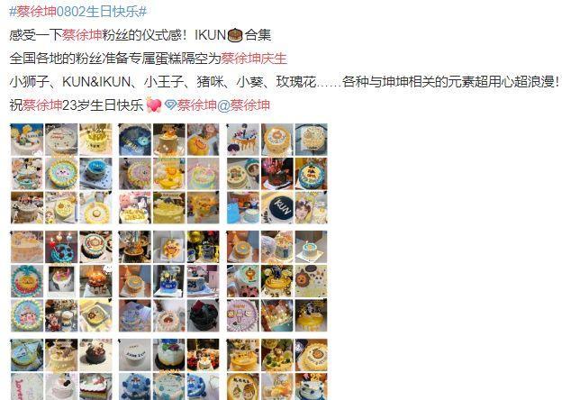 不过粉丝却比爱豆还要积极,虽然是爱豆过生日,但是大部分的粉丝却晒出生日蛋糕,一时之间都不知道是蔡徐坤过生日还是ikun们过生日了。