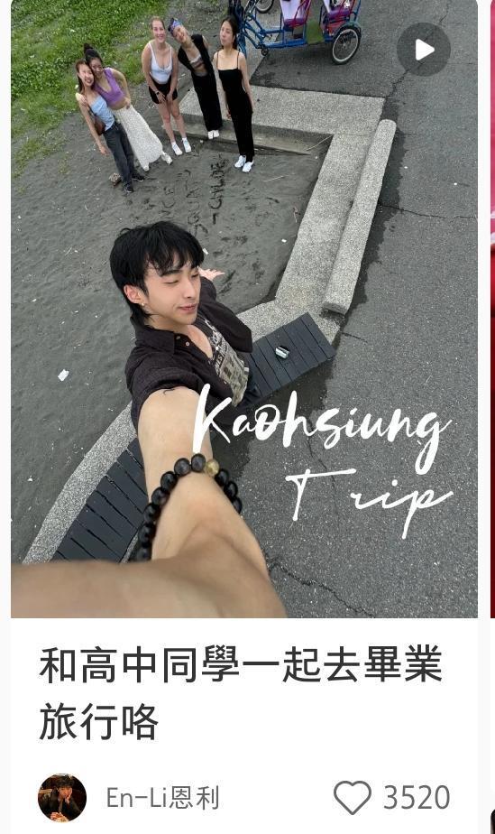 6 月 19 日,恩利又更新动态,原来回台湾后的那几天,他和高中同学一起去来了一场毕业旅行,而旅行的地点是家附近的高雄。