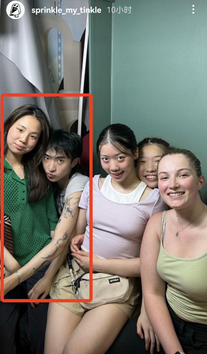 但是恩利和女生们的相处方式如同闺蜜一般,十分亲近。比如下面这一张照片中,恩利就手持饮品,和同学头碰头,紧贴着彼此,很容易让人误会。