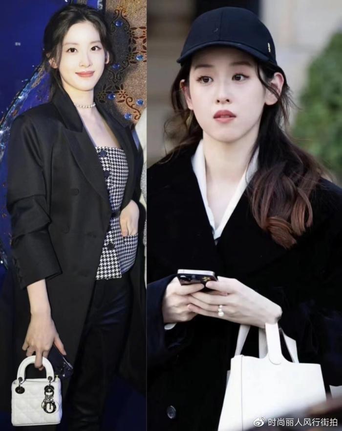 章泽天的这身造型,还有一个小细节,那就是在颜色搭配上,把白色穿在了上半身的位置,亮色上移可以更好的突显视觉重心的上移,除了可以起到修饰身材的效果之外,也让章泽天的身材看上去更瘦了。