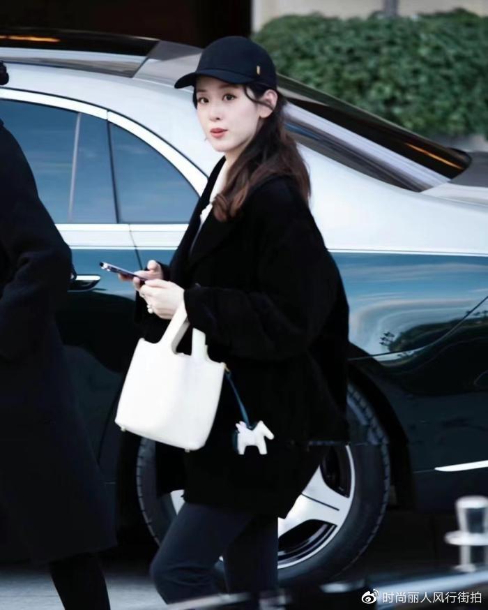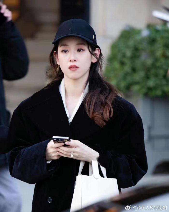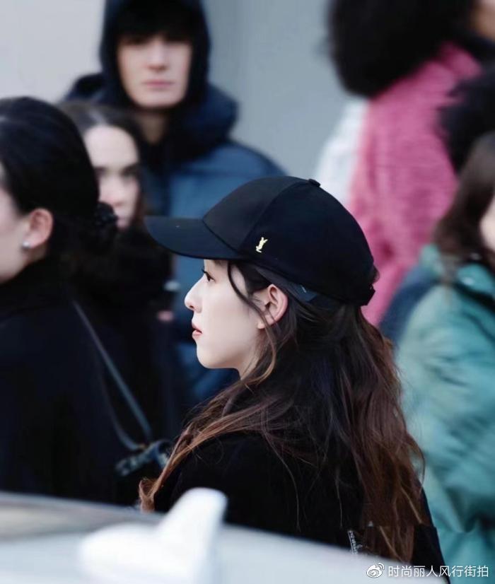 除此之外,她的这身造型还搭配了一顶黑色的鸭舌帽,这顶帽子其实更偏骑士帽一些,纯黑的颜色没有任何印花的点缀,搭配一身黑的造型,反而让章泽天的这身穿搭更加的帅气了。