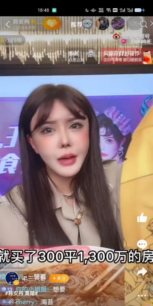 韩安冉的现任丈夫叫马泽鑫,两个人结婚才刚刚两个多月,几乎每天都在抖音秀恩爱,而且前不久刚刚一起在杭州买了房子,最近还在抖音发视频表示两个人明年三月份要举办婚礼,现在正在看离婚场地。