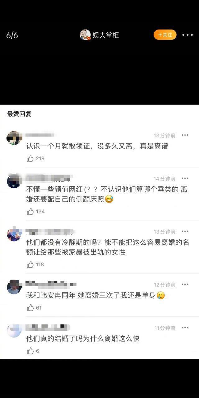韩安冉和马泽鑫发结婚证的照片还历历在目,如今马泽鑫也发了一条抖音,说两个人已经离婚,这个转变速度快得让网友们都猝不及防。