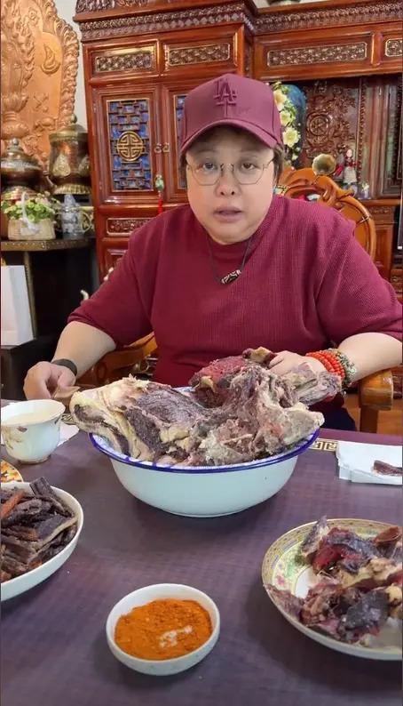 还有的人见韩红视频中直接开吃生牦牛肉,就怀疑韩红是不是准备要带货了?