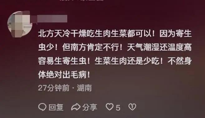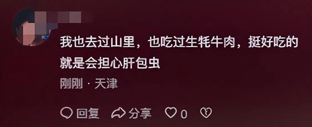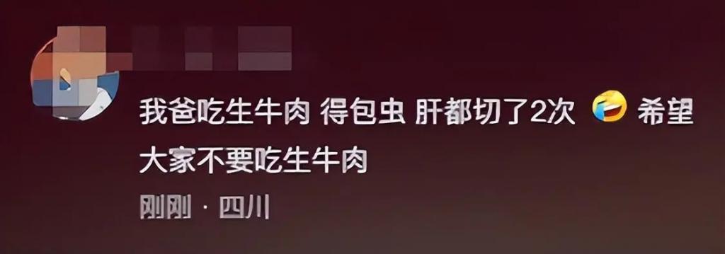 甚至还有一位网友爆料,说自己爸爸因为吃生肉得肝包虫病,肝都被切了两次,还劝告大家千万别吃。