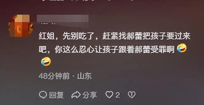 甚至还有人给她提醒,说:你先别吃了,赶紧先去找郝蕾把孩子要过来吧,你这么忍心孩子跟着郝蕾受罪啊?