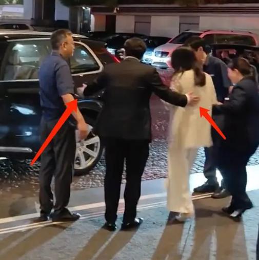 值得一提的是,在即将上车的时候,霍启刚不自觉的扶住了郭晶晶的后背,以一种十分自然的姿势带着她,二人一起先后上了车。