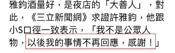 也正因为如此,让小s与许雅钧的婚姻,陷入了僵局,可是双方还未对这一起事件,做出任何的解释。