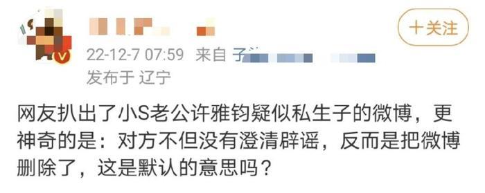 有知名红V大咖爆料,小s的老公许雅钧,疑似在内地拥有私密伴侣,并且两人已经生下了一个3岁的儿子,让人大吃一惊。