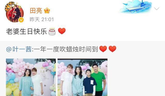 9月3日晚,田亮在社交平台上发布文章,庆祝妻子叶一茜38岁生日,并甜甜地给妻子打电话。一家四口在同一个框架内快乐,引发网友热议。