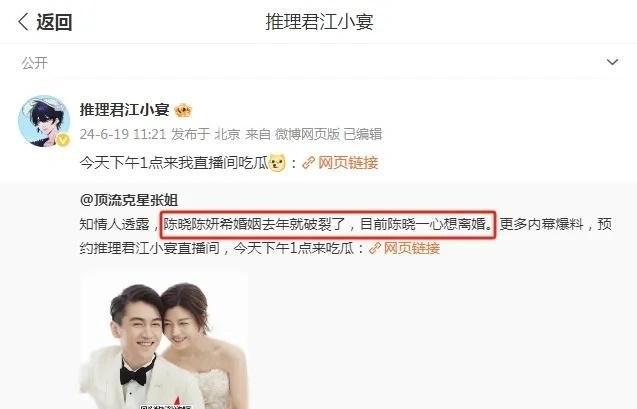 而近段时间以来,陈晓和陈妍希的婚变传闻也在网络上闹得沸沸扬扬的,双方也都没有对此做出任何的回应了。据娱记爆料称,陈晓在去年年底就提出了离婚,甚至强调自己可以净身出户。为此,陈晓也没有再回到两人的爱巢中,还特意拉黑了陈妍希,更换了手机号码,女方如果想要联系男方,只能通过工作人员了。