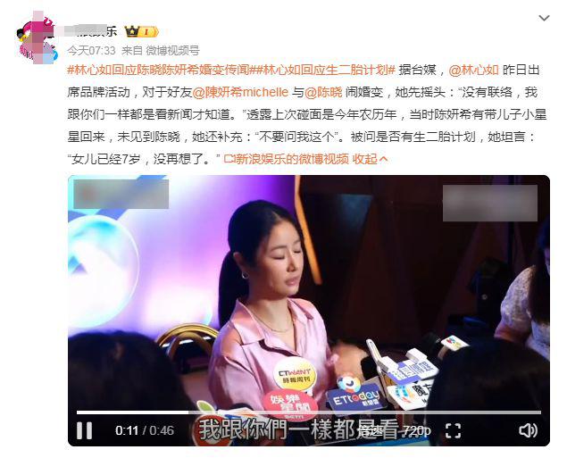 虽然双方都没有回应,但是作为陈妍希的好闺蜜的林心如,却在出席活动的时候表态,自己也是看了新闻之后才知道的,透露在年初的时候,陈妍希有带着小星星与自己聚会,但是没有见到陈晓了。