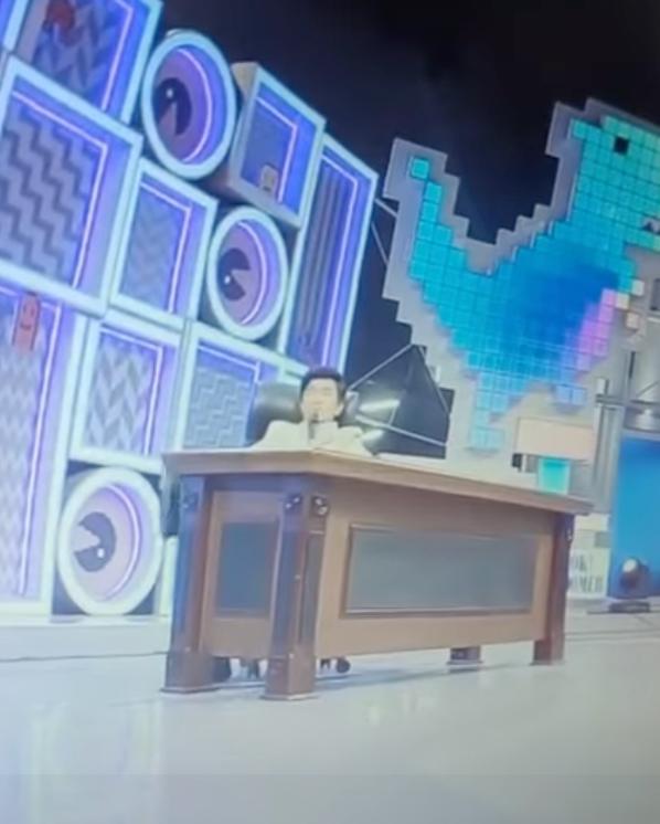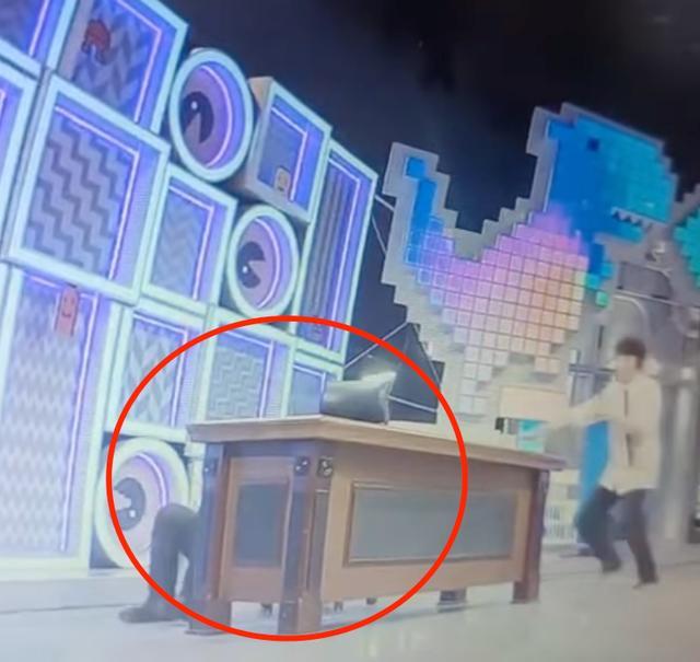可以看到,当天吴宗宪穿着一套米灰色西装,正坐在一张桌子前举着话筒说话,只见他一边说话一边前后将两条腿架在桌前,但谁也没料到,下一秒吴宗宪因为重心不稳狠狠摔倒在地。