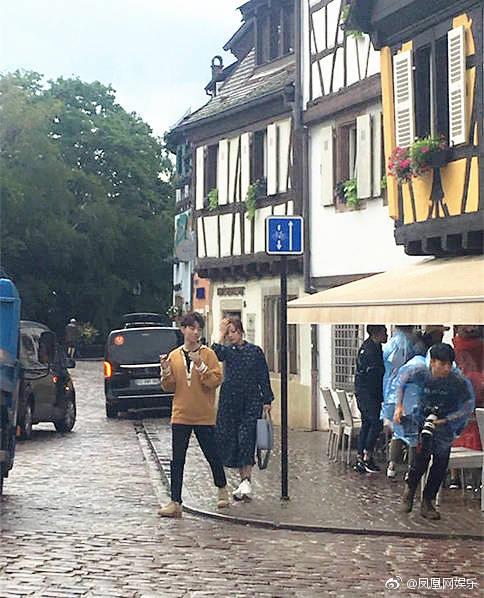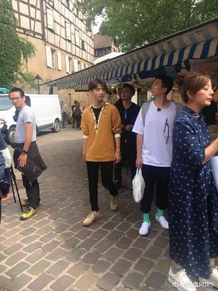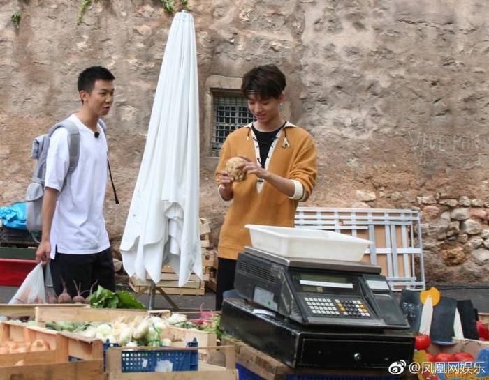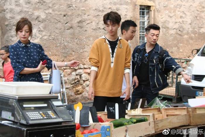 赵薇王俊凯逛菜场 《中餐厅2》路透,王俊凯身穿黄色外套,头戴发带