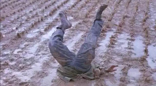 男主掉进泥潭时,是一种很特别的倒插姿势,双腿仿佛一个胜利的 V,但和几位主人公最终的命运比起来,这个 V 却显得额外讽刺。