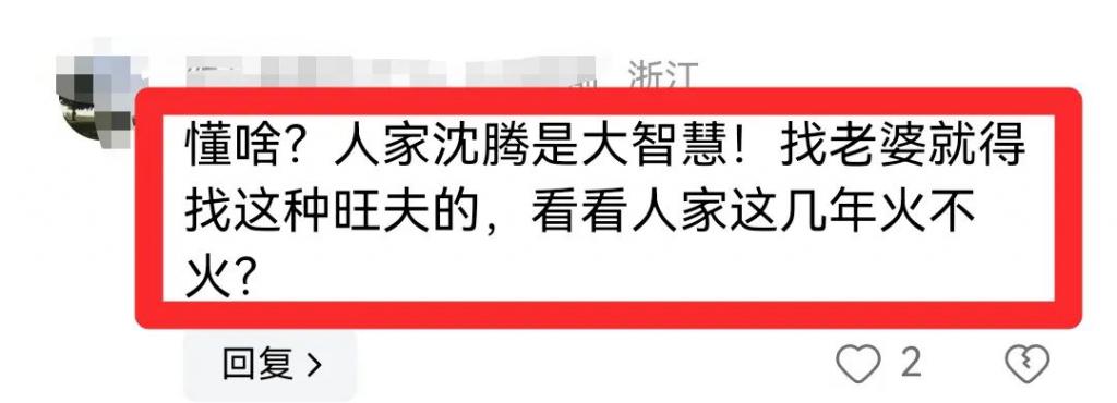 但有不少网友却觉得:"懂啥?人家沈腾是大智慧!找老婆就得找这种旺夫的,看看人家这几年火不火?"