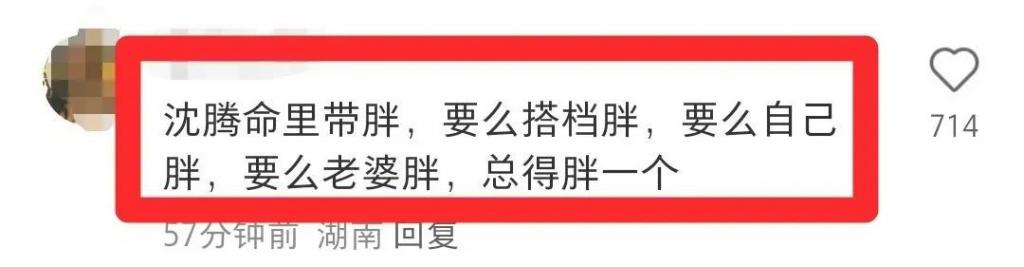 还有网友调侃说:"沈腾命里带胖,要么搭档胖,要么自己胖,要么老婆胖,总得胖一个"