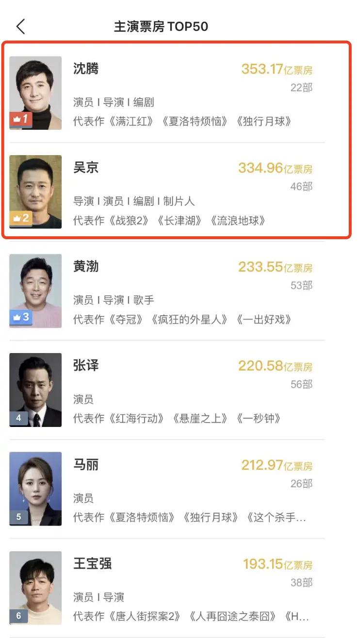 他出演的《流浪地球》《战狼》《长津湖》等作品,票房大获全胜,和沈腾共同成为了国产电影的票房收割机。