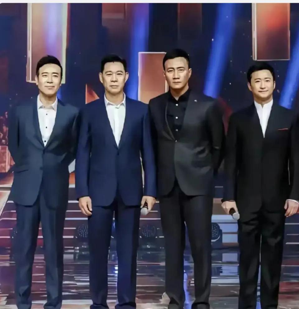 看看这一张照片,四位大咖站在一起,吴京最「板正」。