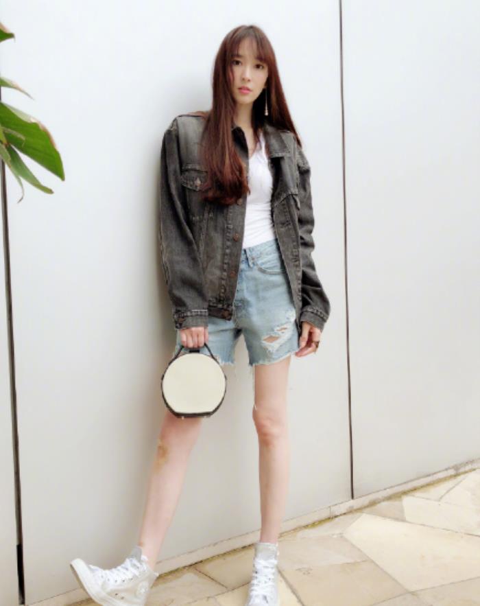 照片中蒋丽莎齐肩短发随意的披散着,上身穿一件黑色短款吊带,下身穿一条同色系高腰短裤,搭配了一双黑色长筒靴,让她看上去不仅性感而且非常干练。