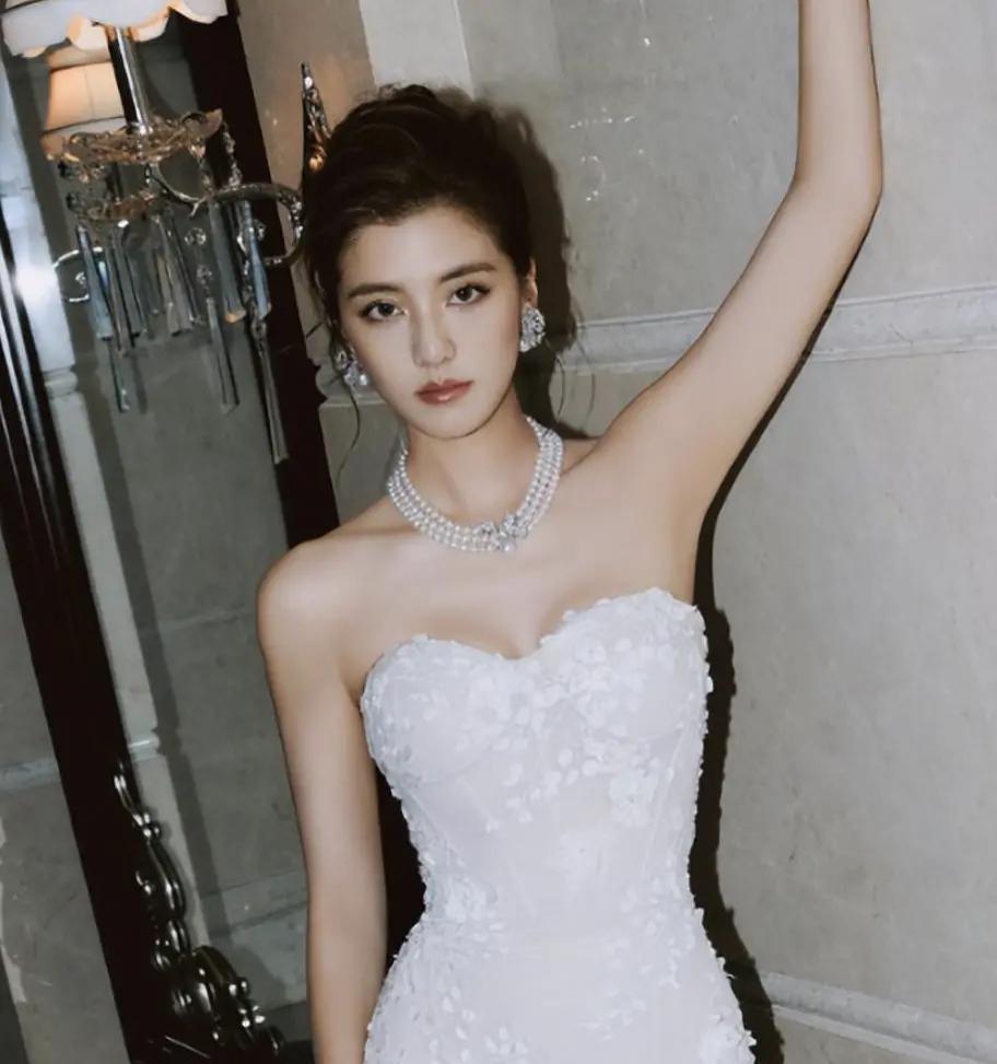 在婚礼现场,她身穿一席耀眼夺目的方领白纱蓬蓬裙,宛如从中世纪古堡里面走出的公主。