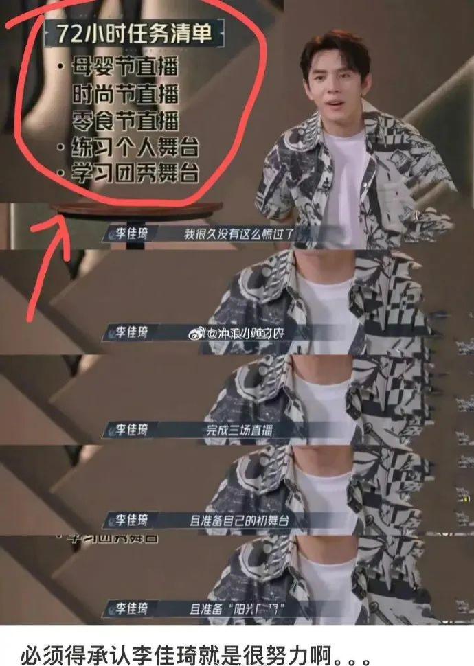 但他的体力和动作完全跟不上其他人,大部分都是其他三位开始做下一个动作了,李佳琦偷瞄一下才能反应过来。