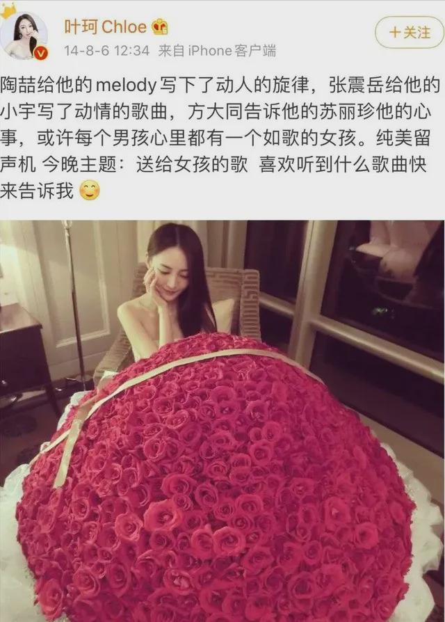 半年后,叶珂羞涩地在社交媒体上晒出巨型玫瑰花束,并配文:
