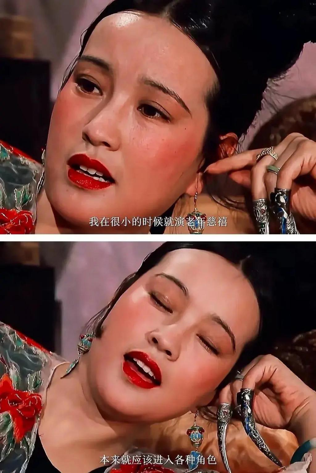 她说自己很年轻的时候就演了老年慈禧,自己能克服年龄差距去出演角色,一个角色从年轻到老她都能演。